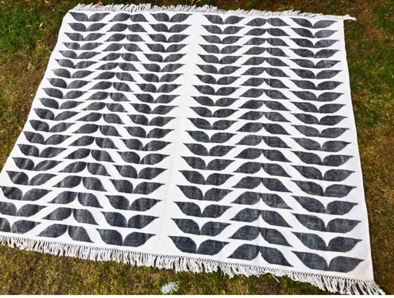 INDIAN HANDMADE WOOLLEN DHURRIE WOVEN ON VERTICAL LOOM IT IS USED IN PARTY CORRIDOR MEETING ROOM ON BANK OF RIVER SEA SHORE ETC. ITS BIODEGRADABLE AND WASHED WITH PLAIN WATER WITH SODA AND CLEANED BY VACCUM CLEANER